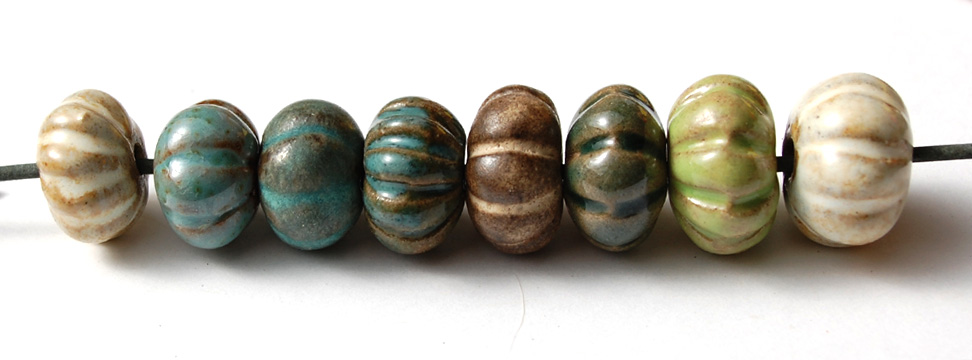 So pretty! They look just like pumpkins to me :-). Or flattened versions of those melon beads out there.