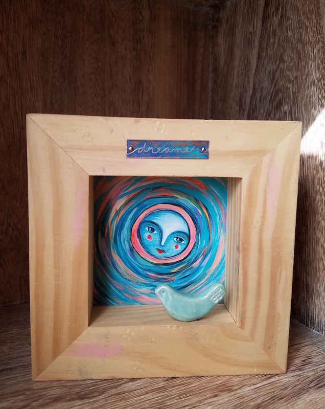 Between firings, I like to flex other creative muscles. It is so very good to be creative in other ways besides clay but then I bring a little clay into it. Many moons ago, I painted. All the time. It was my absolute joy... but then for some reason, I stopped. It has found me again...